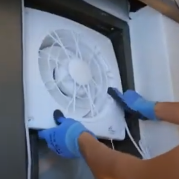 - 새 환풍기를 기존 위치에 맞춰 설치하고 나사를 조여 고정함.