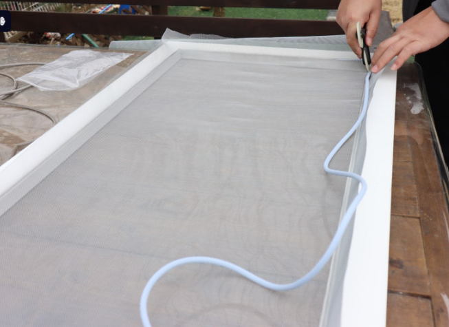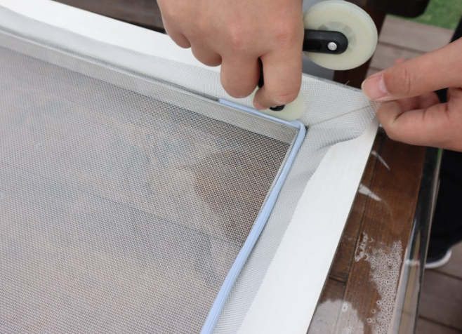 단계 4: 방충망을 창문에 맞춰 위치시키고, 고정핀이나 나사로 단단히 고정합니다. 이때 방충망이 평평하게 설치되도록 주의합니다.