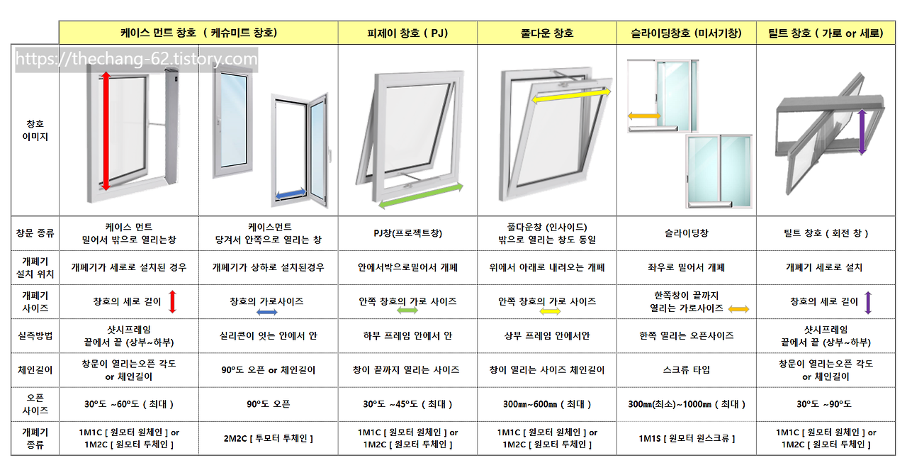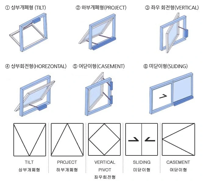 2. 각 창의 개폐기 종류