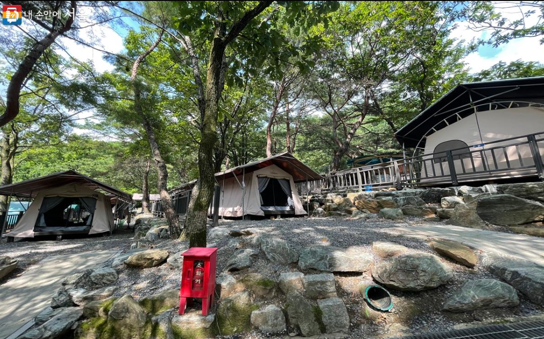 - 특징: 자가 텐트 설치가 가능한 오토캠핑장과 텐트가 설치되어 있는 가족캠핑장으로 구성되어 있습니다.