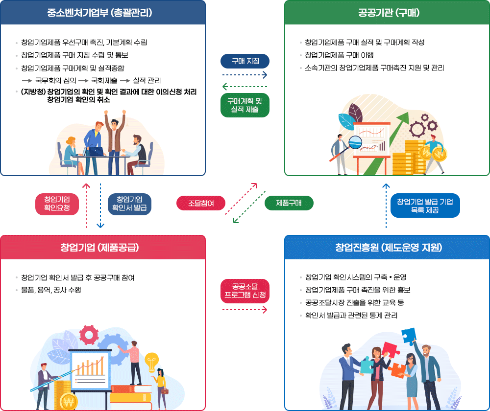 창업기업이 직접 생산한 제품, 용역, 공사를 공공기관에서 우선적으로 구매하도록 하여 창업기업의 판로 확보 및 구매 촉진을 지원하기 위한 제도