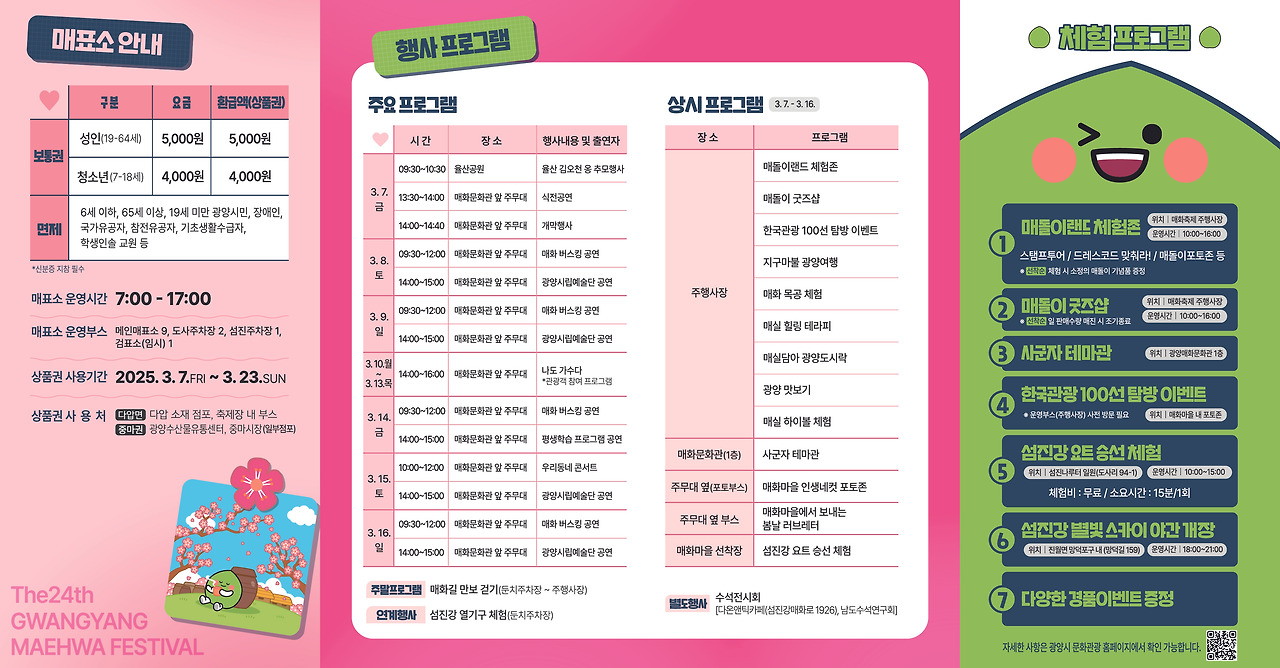 - 광양 매화축제: 3월 7일 ~ 3월 16일