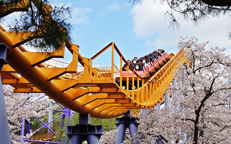 꽃구경을 하면서 동시에 테마파크의 모든 어트랙션을 즐길 수 있어 하루 종일 알찬 일정 구성이 가능하죠.